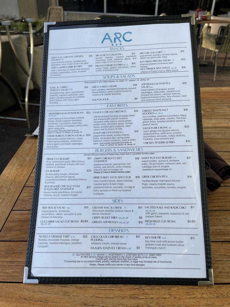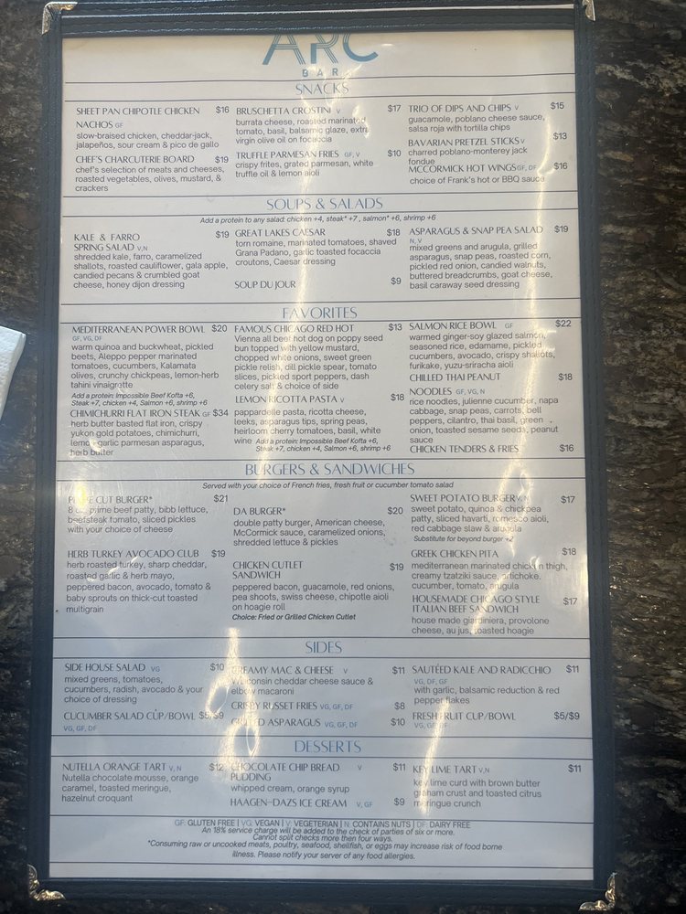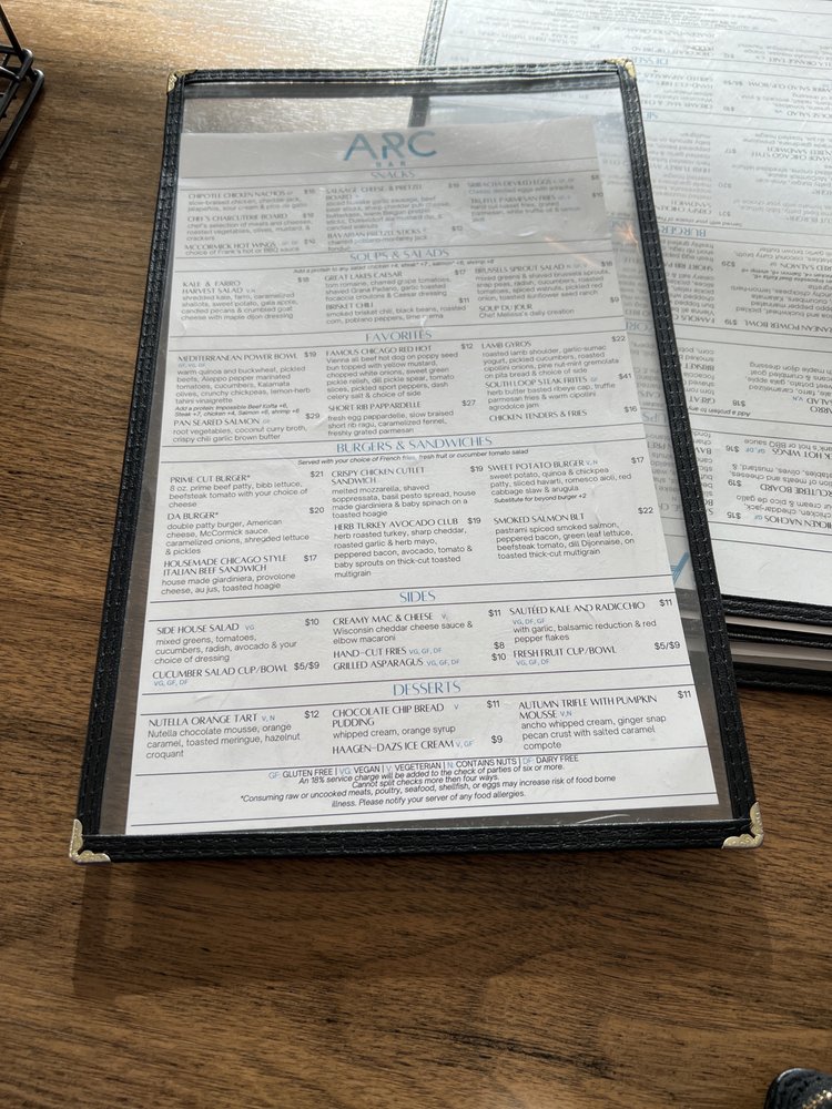Introducing the menu at Arc Bar, located in Chicago's South Loop area. This American bar offers a casual and trendy atmosphere with great options for both food and drinks. With a diverse menu featuring burgers, chicken sandwiches, wings, pretzels, and gourmet martinis, Arc Bar aims to please every palate. Customers rave about the outdoor seating area with firepits, making it perfect for a relaxing evening. The truffle parm fries are a standout dish, alongside the salmon rice bowl and flat iron steak. The friendly staff and excellent service enhance the dining experience. Whether you're looking for a place to catch up with friends, have a work meeting, or enjoy a night out, Arc Bar offers a convenient and welcoming setting. Don't miss out on the delicious food and vibrant atmosphere at this popular spot near McCormick Place.